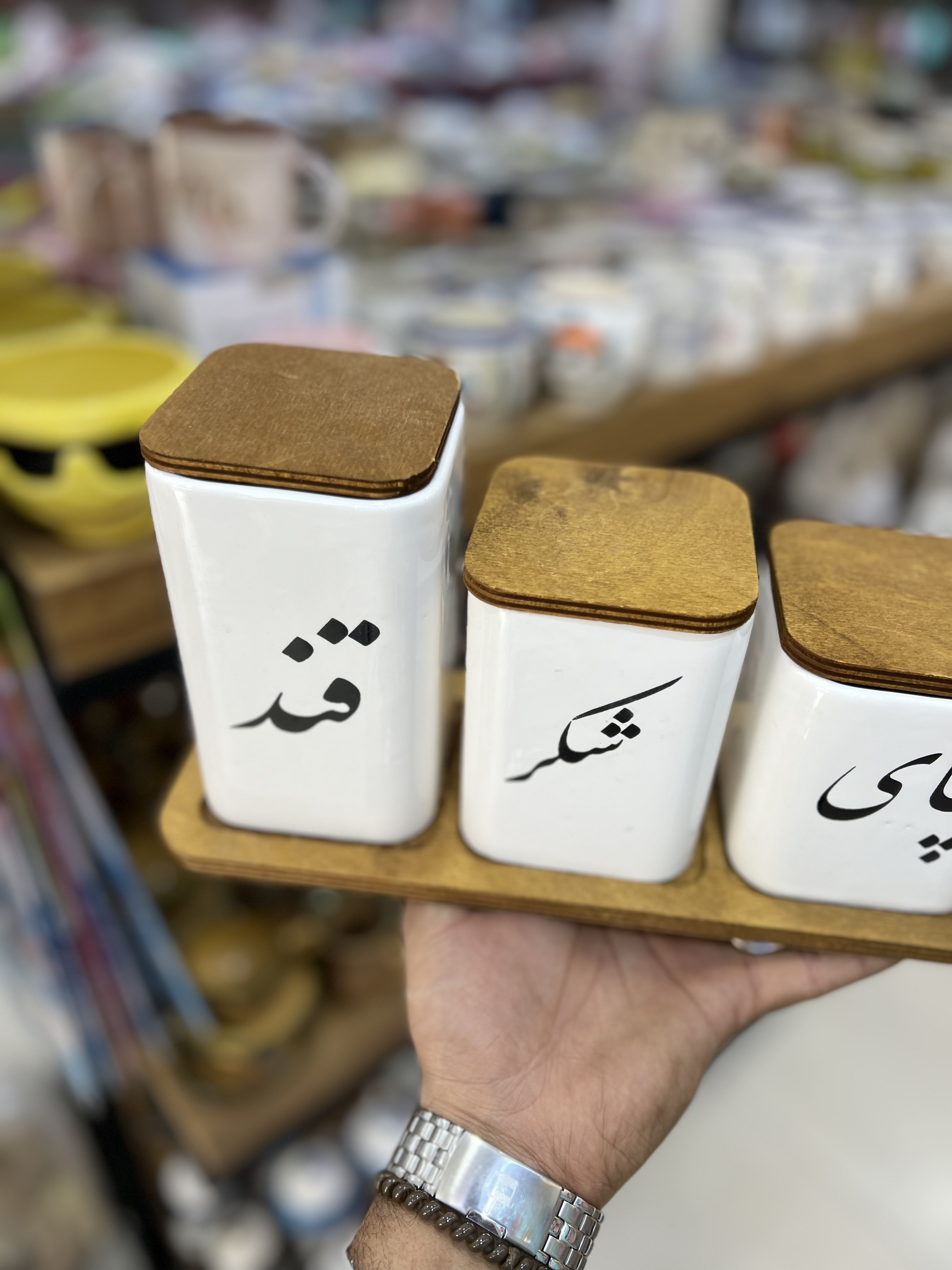 پاسماوری ۴عددی زیر و درب چوبی سرامیکی فونت فارسی