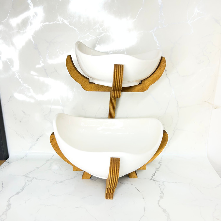 شکلات خوری و میوه خوری دوطبقه سرامیک پایه چوبی