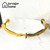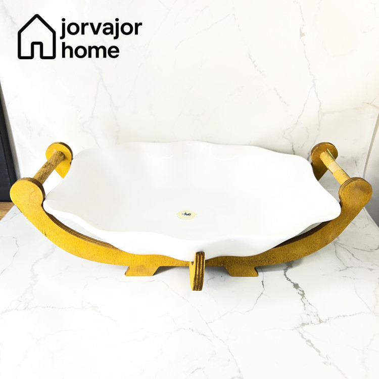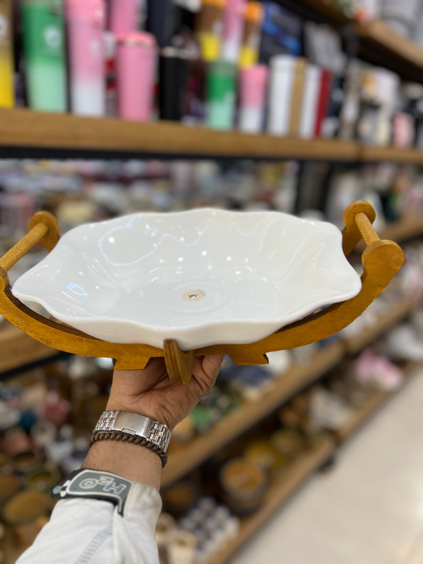 ظرف نیم گود میوه خوری/شیرینی خوری/مرغ خوی/ سرامیک پایه چوبی