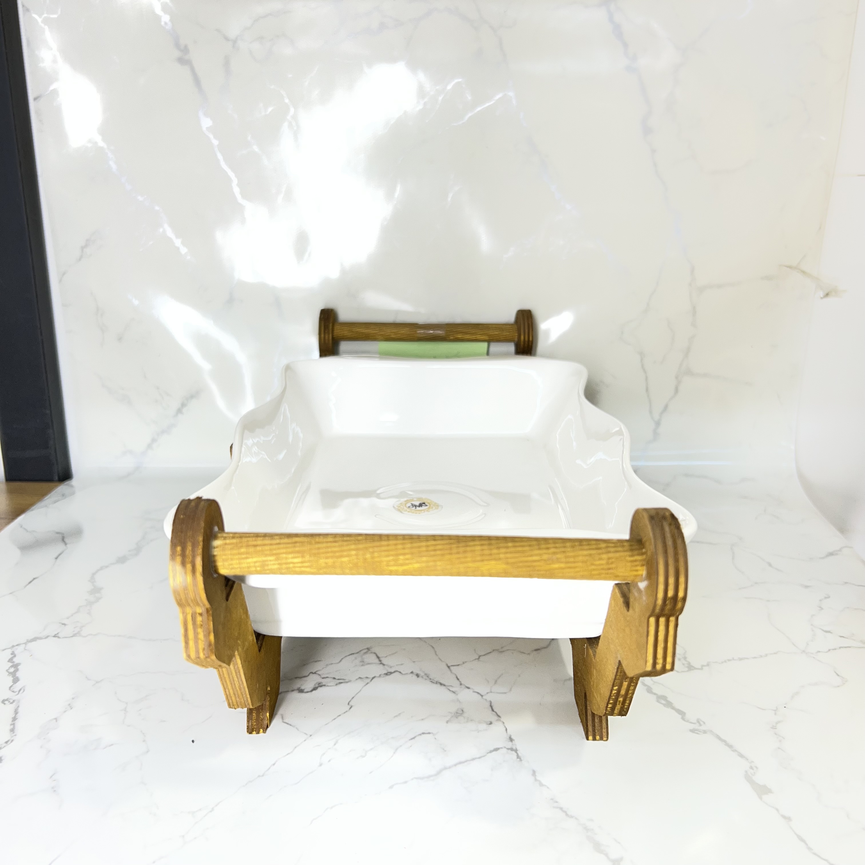 میوه خوری/شیرینی خوری/نیم لبه سرامیک پایه چوبی